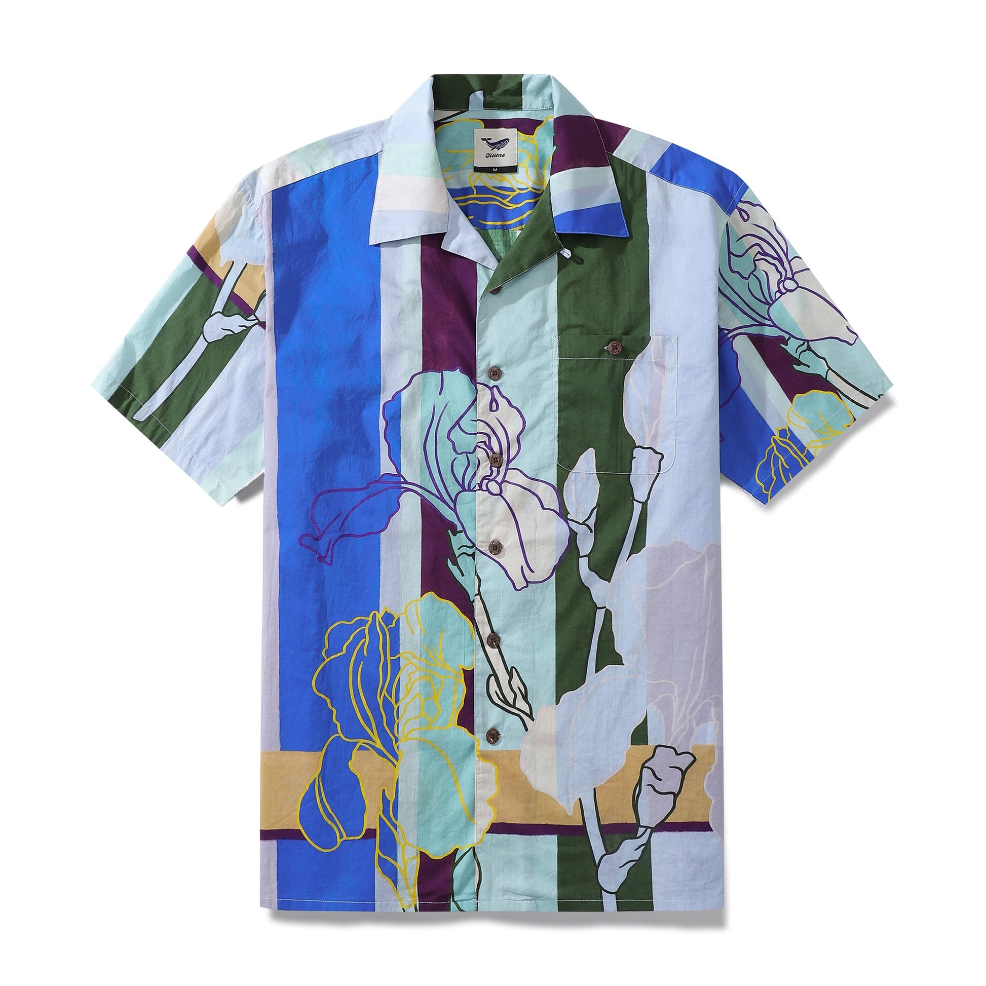 Yiume Outlets Hawaiian Shirts For Men Iris flower Shirt 100% Cotton