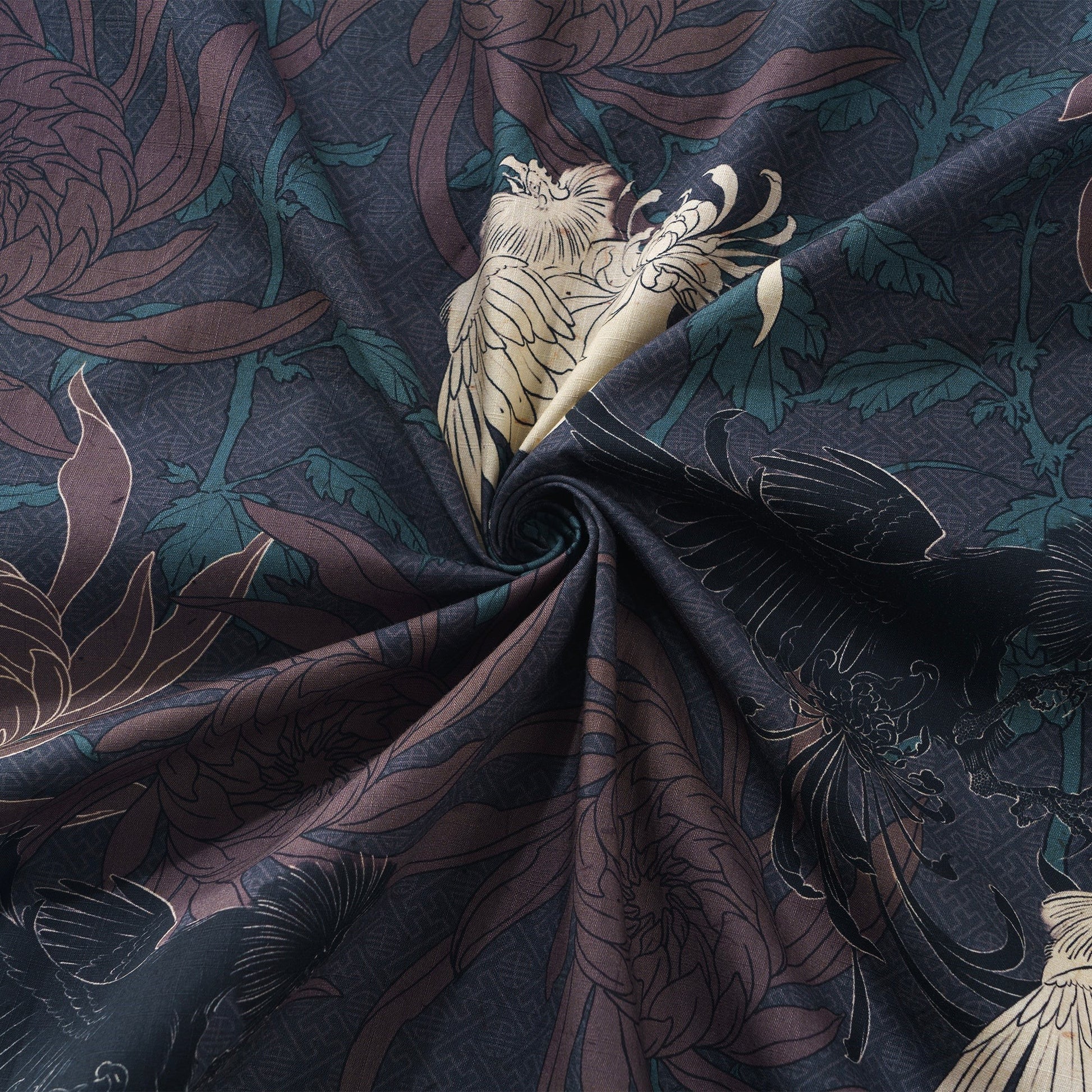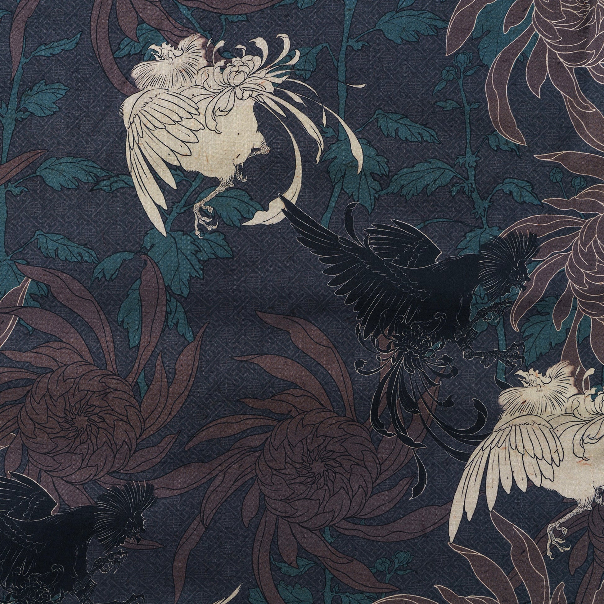 In the past, chrysanthemums symbolized nobility in the Japanese imperial family, while cockfighting was considered a noble pastime. The rooster represents bravery and vigilance, while the chrysanthemum symbolizes resilience and nobility, both carrying auspicious meanings. This design features a striking combination of chrysanthemums and roosters, blending the elegance of the flower with the vigor of the rooster through a traditional Japanese color palette and simple lines inspired by kimono designs. The graceful chrysanthemum contrasts sharply with the energetic rooster, creating a harmonious balance on the shirt that exudes both traditional Japanese cultural charm and modern casual appeal. This shirt seamlessly merges tradition and modernity, showcasing a unique charm that allows one to experience the fusion of history and contemporary life while appreciating the heritage and innovation of culture.