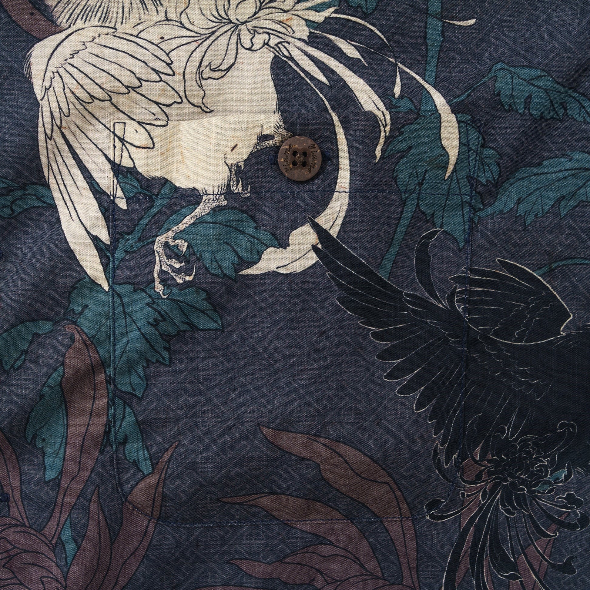 Yiume Outlets Japanese Hawaiian Shirt 100% Cotton Men's Short Sleeve Camp Collar Shirt Aloha Shirt Imperial Garden Rooster Painting