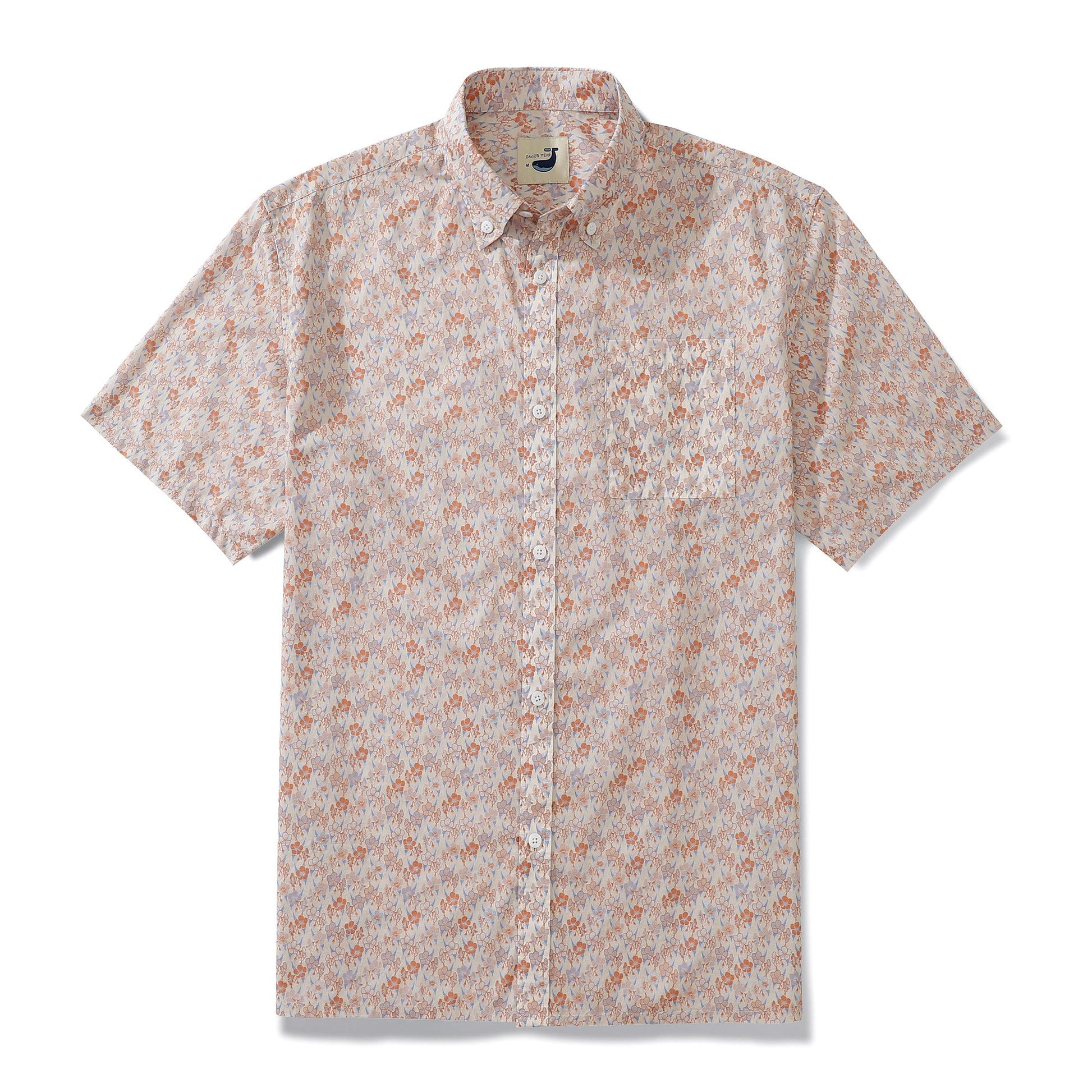 Yiume Outlets Men's Aloha Shirt Light Pink Floral Cotton Short Sleeve Button Down Pocket Workwear
