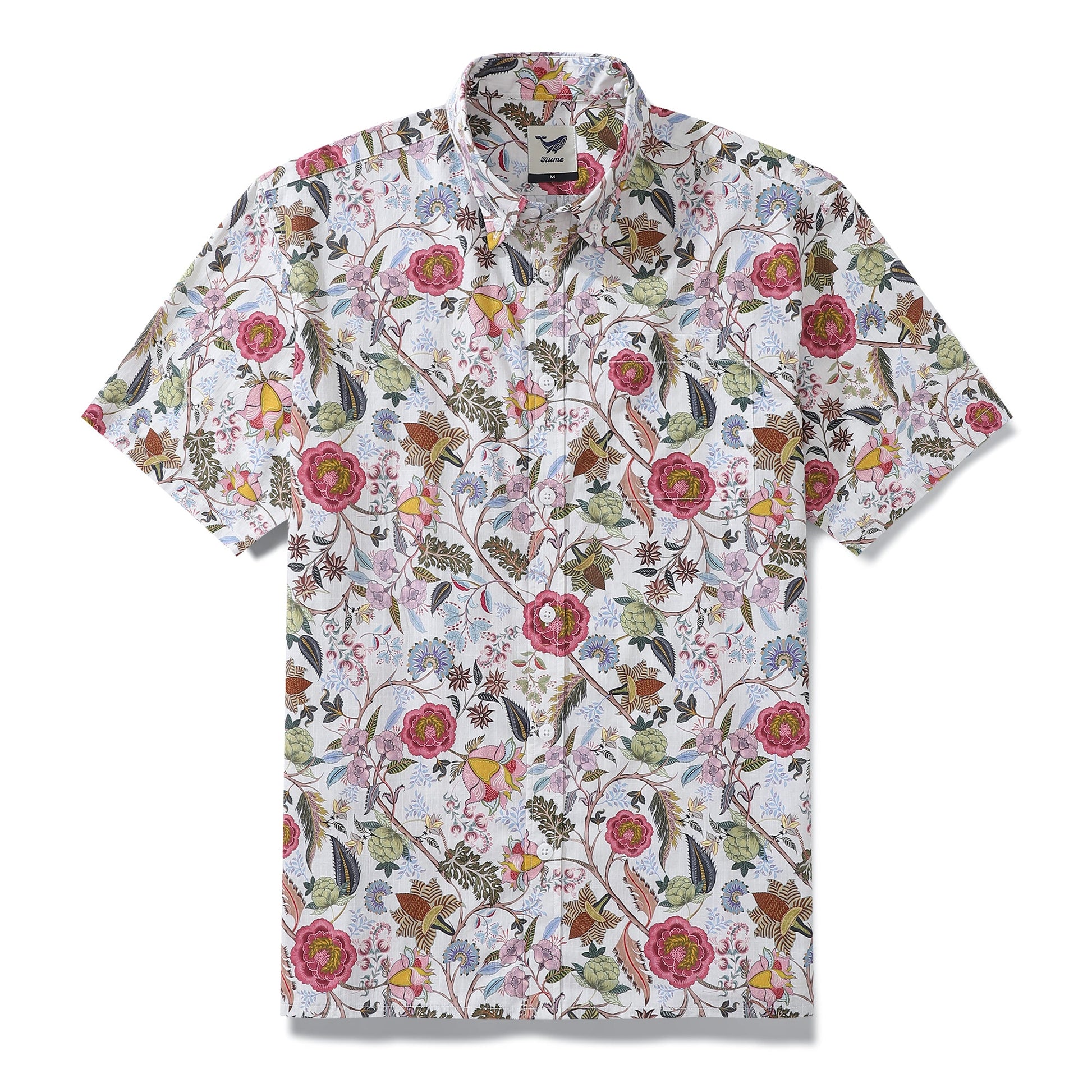 Yiume Outlets 1930s Vintage Hawaiian Shirt For Men Chintz Spring Colors Print Cotton Short Sleeve Aloha Shirt