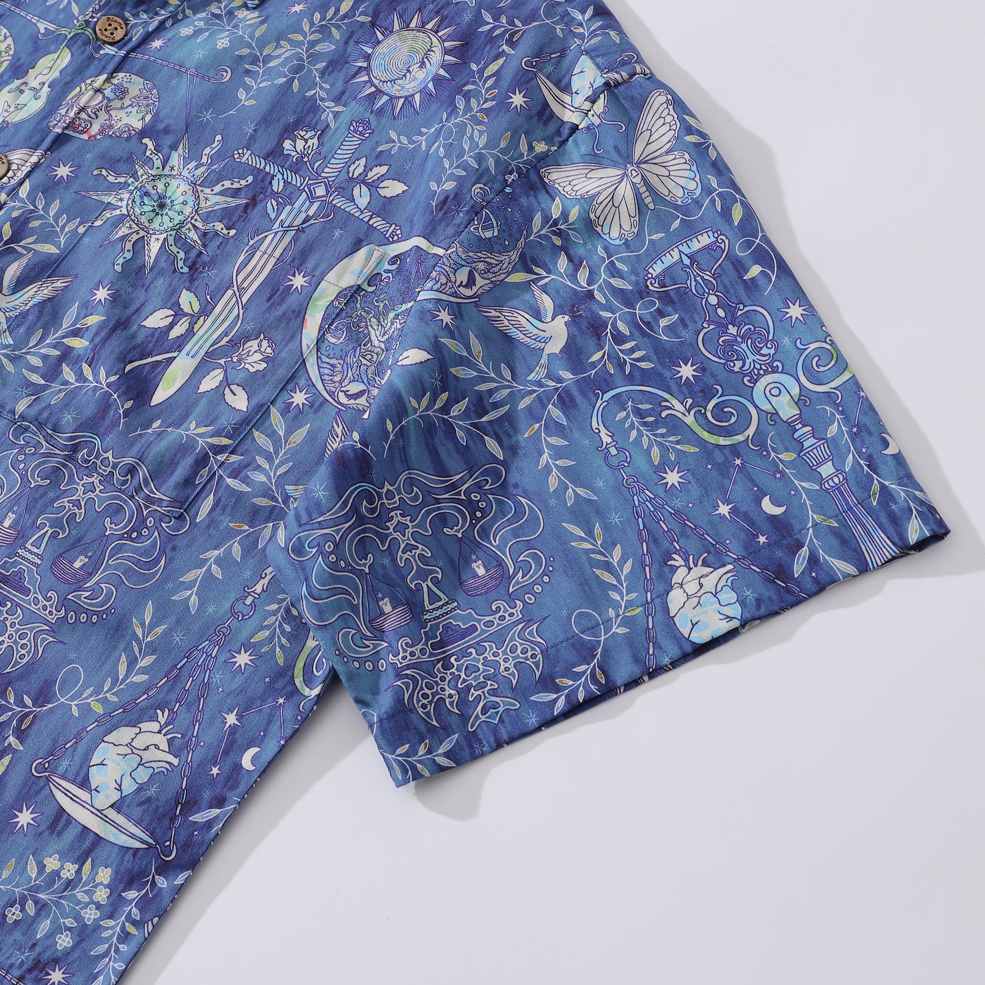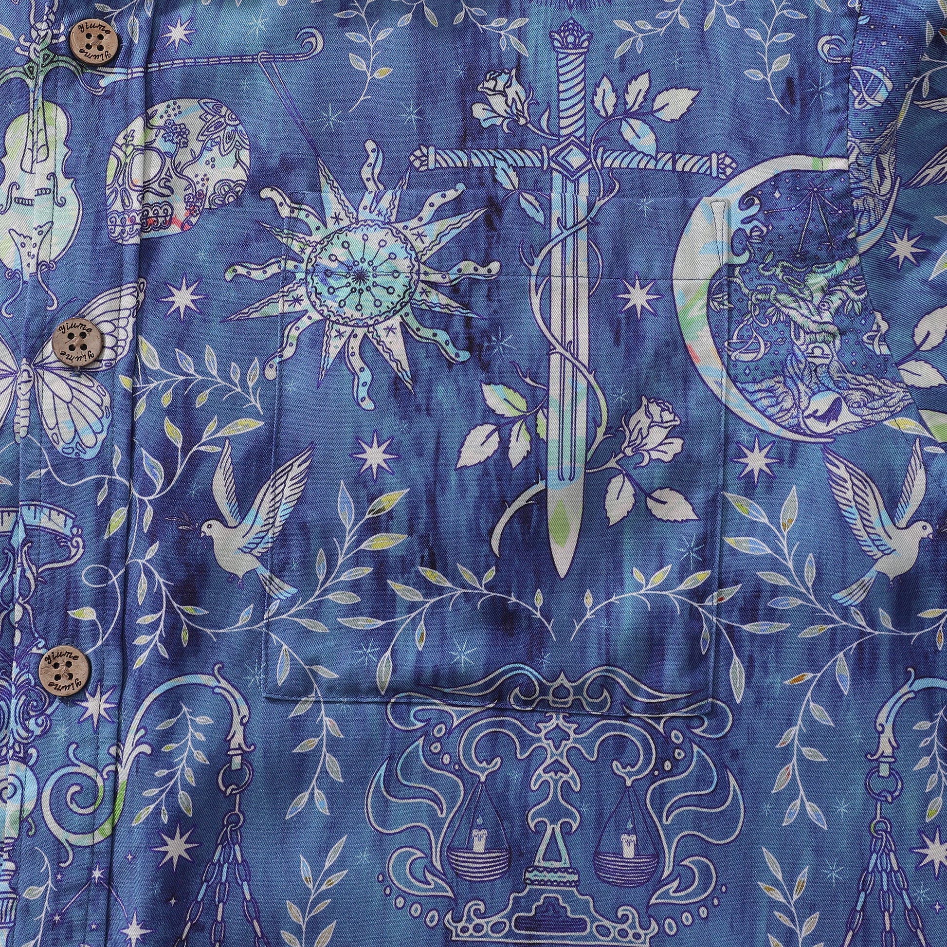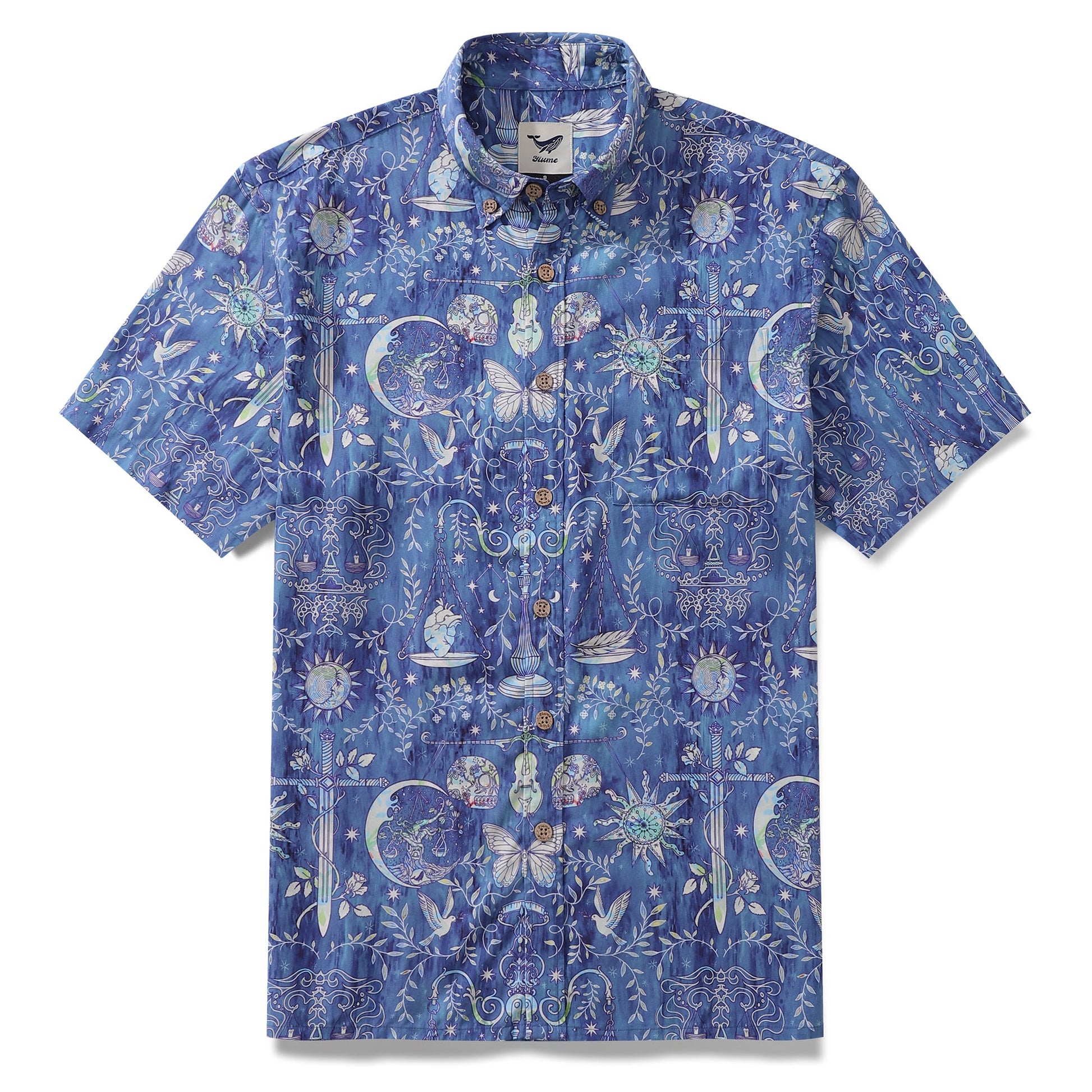 Yiume Outlets Men's Hawaiian Shirt Libra Print Tencel™ Button-down Short Sleeve Aloha Shirt