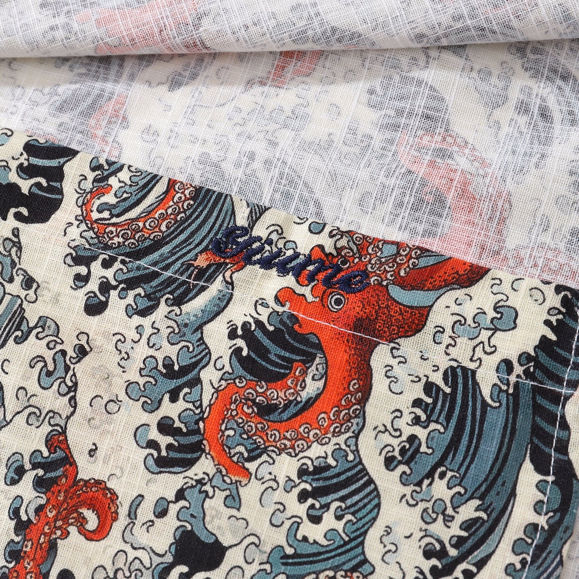 Waves tumble across the canvas, as if at any moment they could pull one into the mysteries of the ocean depths. Octopuses weave through the waves, each showcasing their form in different ways; some octopuses boldly reveal their heads, curiously surveying the world around them; others stretch out their tentacles, as if to gently converse with the undulations of the sea; and yet others open their mouths wide, as though laughing merrily, radiating a vibe of joy and vitality. The detail in this design is incredibly rich, each octopus displaying its own unique stance and expression. This pattern is not just a work of art; it is a tribute to nature, inspiring a sense of awe and joy.