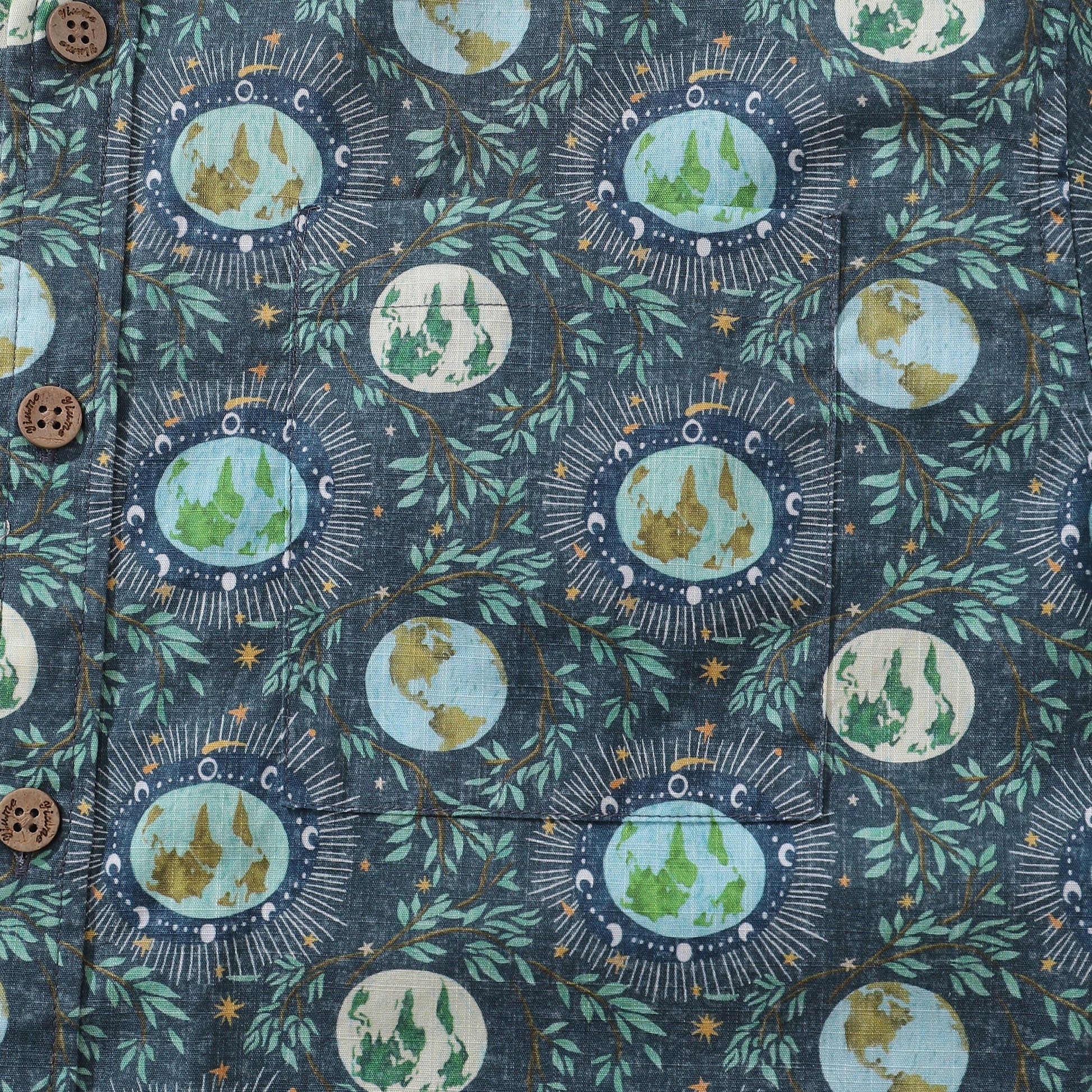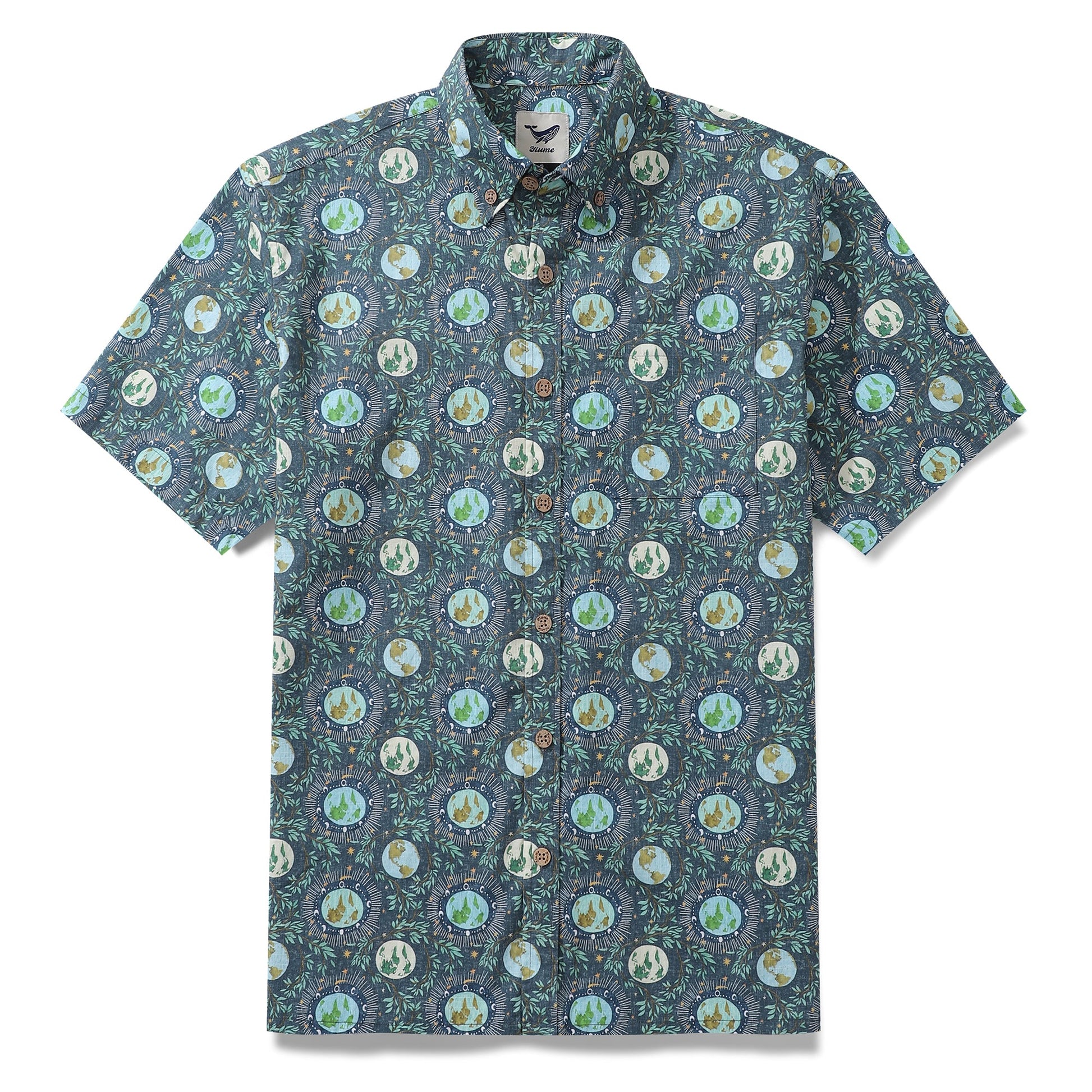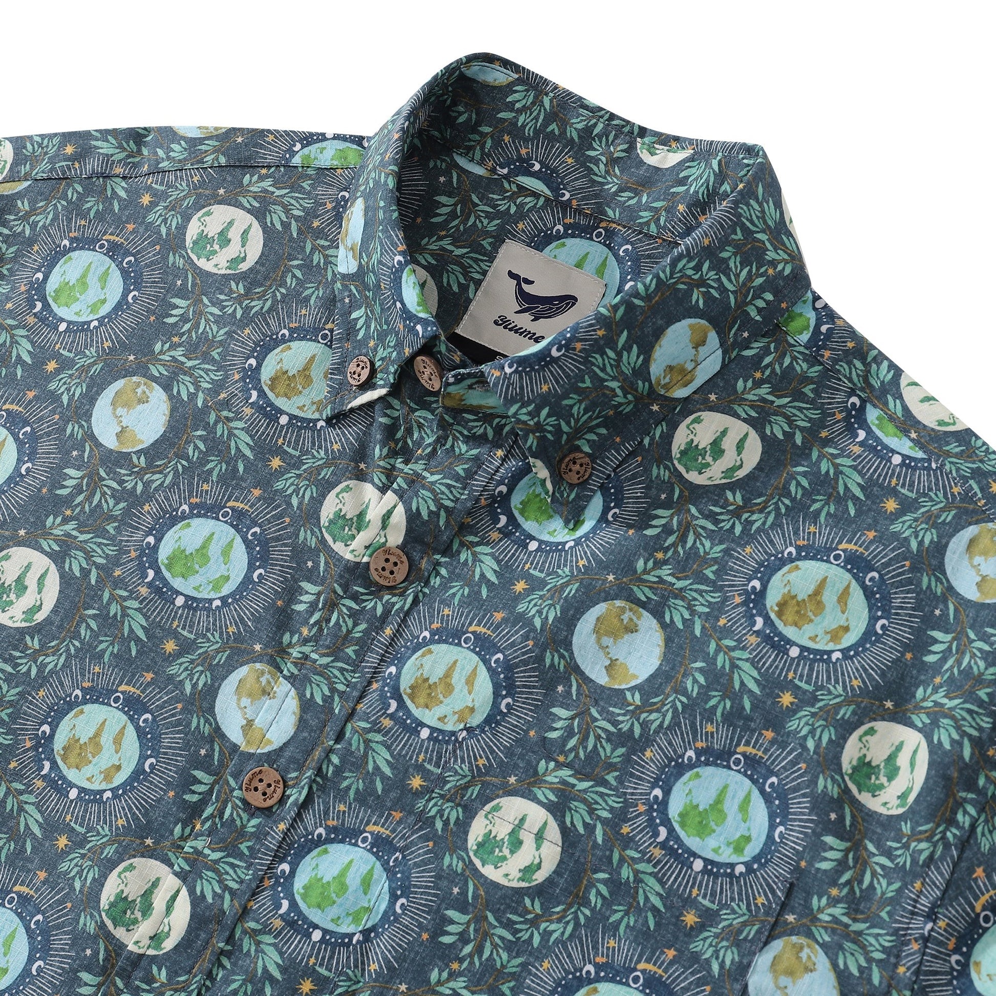 Yiume Outlets Men's Hawaiian Shirt Planet Earth Day Shirt Cotton Button-down Short Sleeve Aloha Shirt