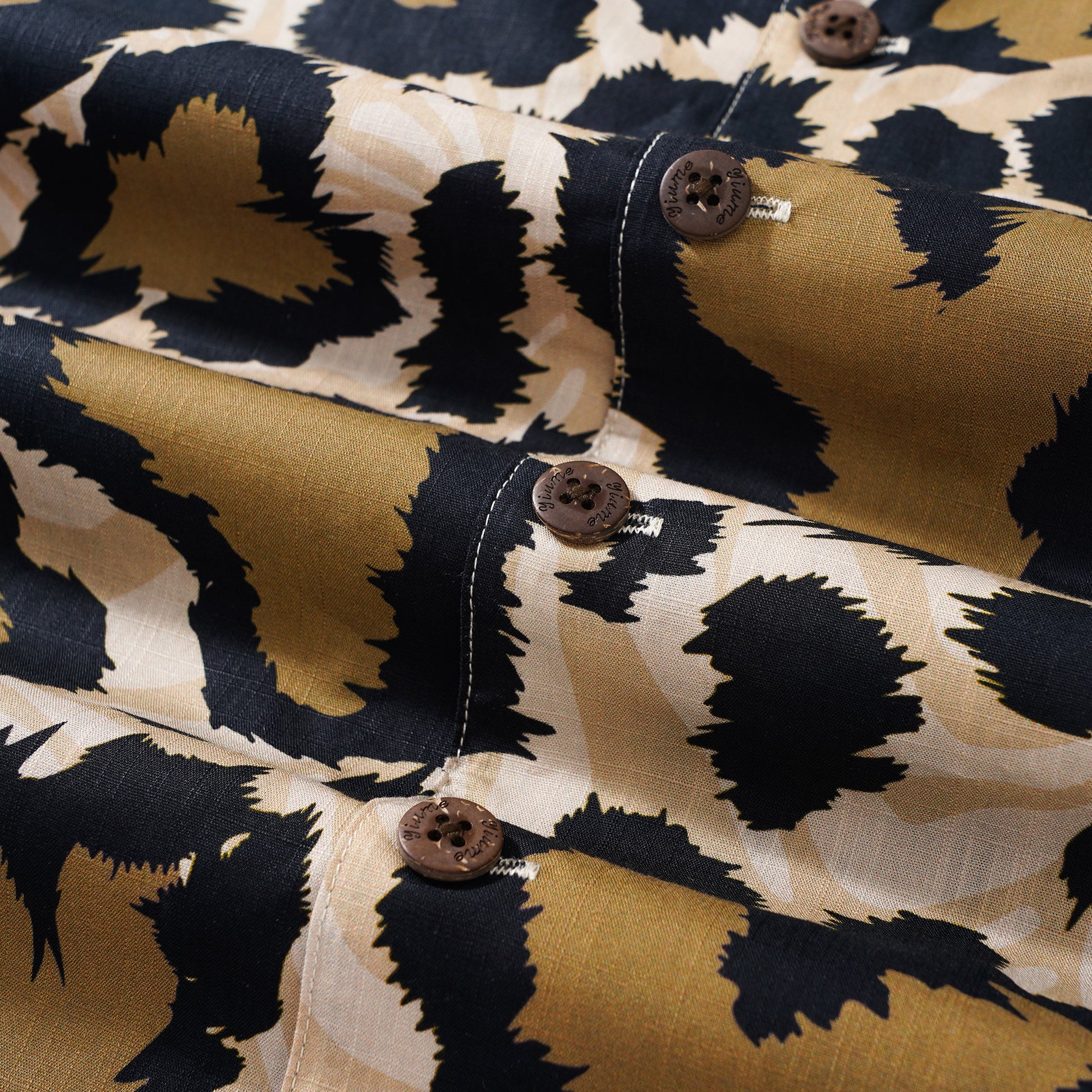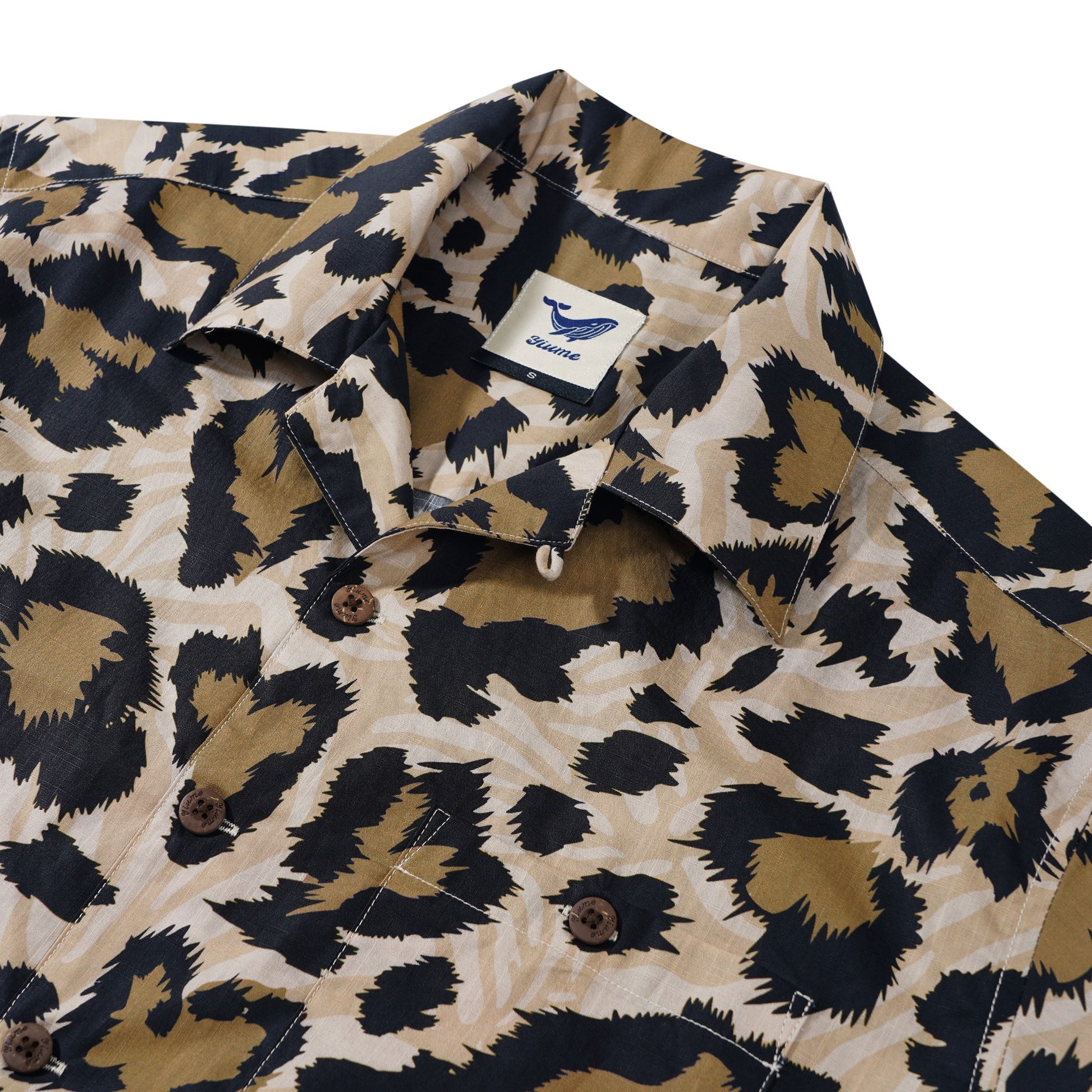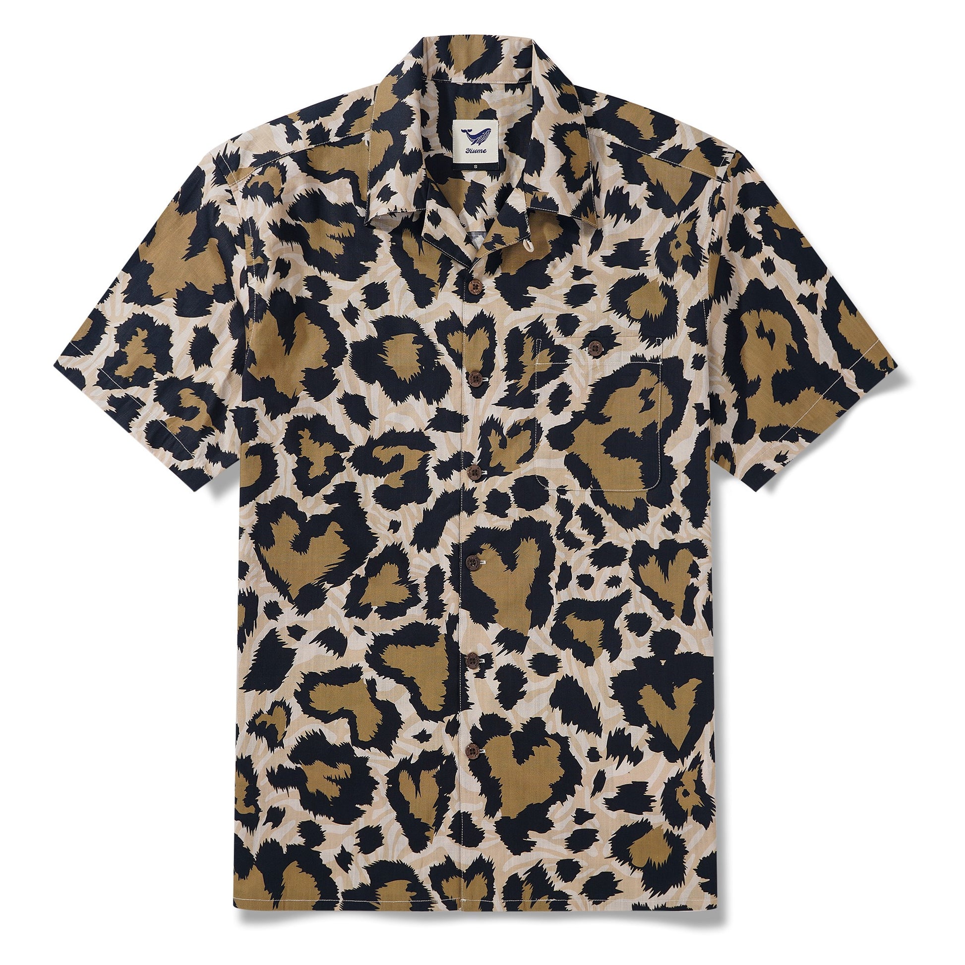 Yiume Outlets Men's Hawaiian Shirt Short Sleeve Camp Collar 100% Cotton Black Aloha Leopard Wilderness Whisper Leopard Print