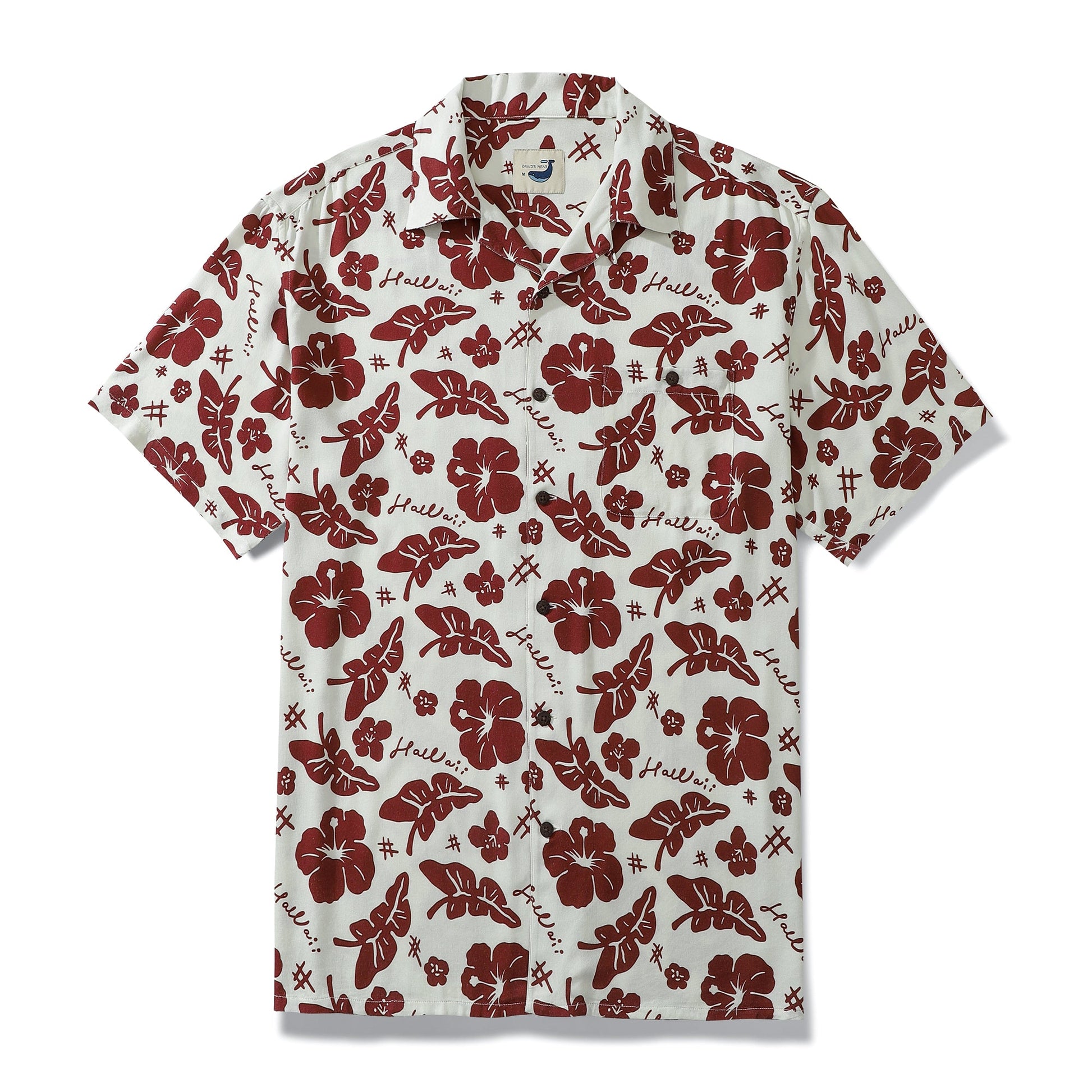 Yiume Outlets Red Hibiscus Classic Rayon Hawaiian Shirt Tropical Vibe Soft To Wear