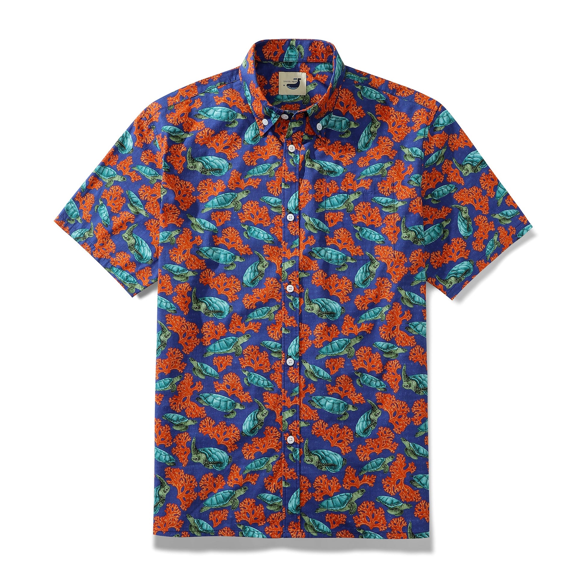Yiume Outlets Sea Turtle And Coral Dark Blue Men's Button-down Shirt 100% Cotton